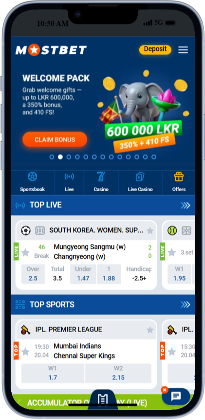 Mostbet app covers 1,000 sports matches daily and has 12,000+ casino games for players in Sri Lanka. It has a user-friendly interface and includes all essential features that you may use on the go. Download Mostbet APK from the official site, install it, and get a welcome bonus of up to 160,000 LKR.